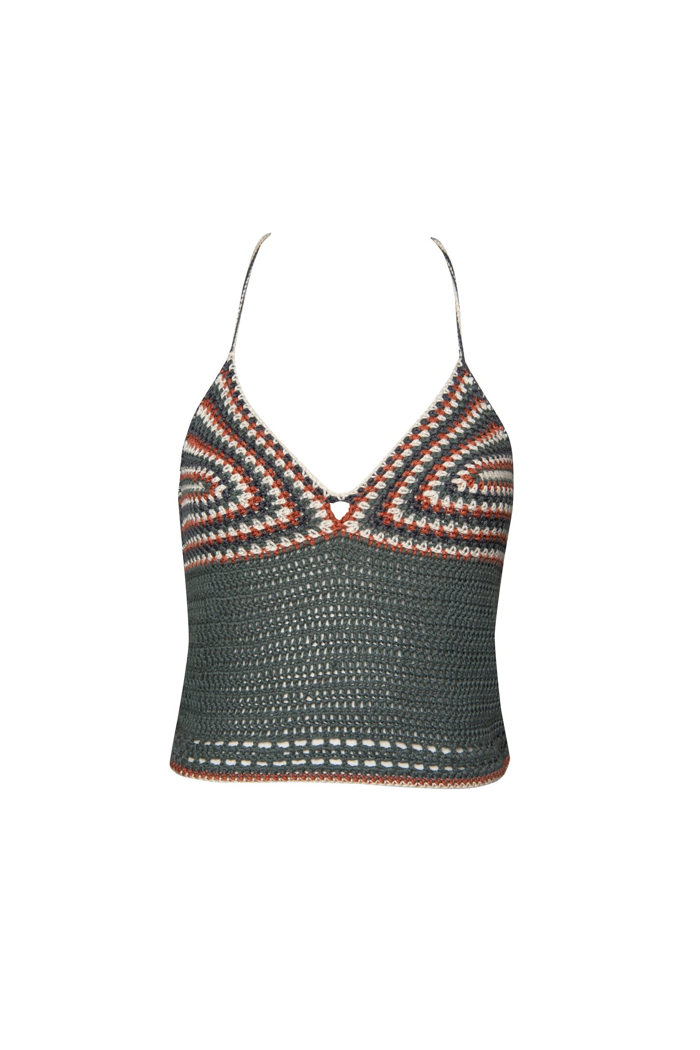 Inspired by the tones of the savannah, the Mara Top is delicately hand-crocheted in khaki, rust, and cream. The open back features an adjustable lace-up detail, designed for a considered, comfortable fit.