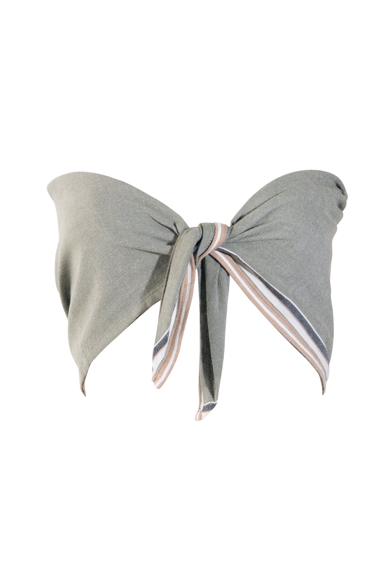 Product image of a cream and khaki cotton scarf top styled as a crop, shown as part of a matching set.
